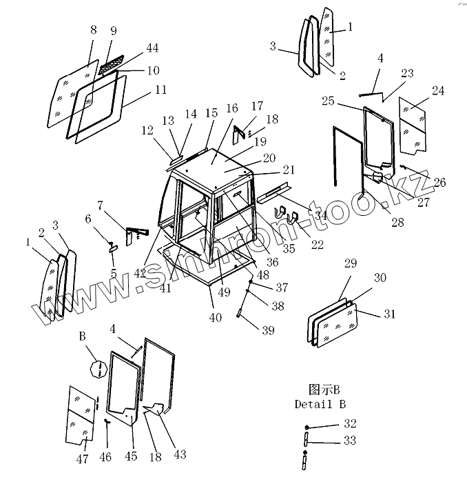 Каталог запасных частей к технике: Shantui Каток SR20M. CAB ASSY