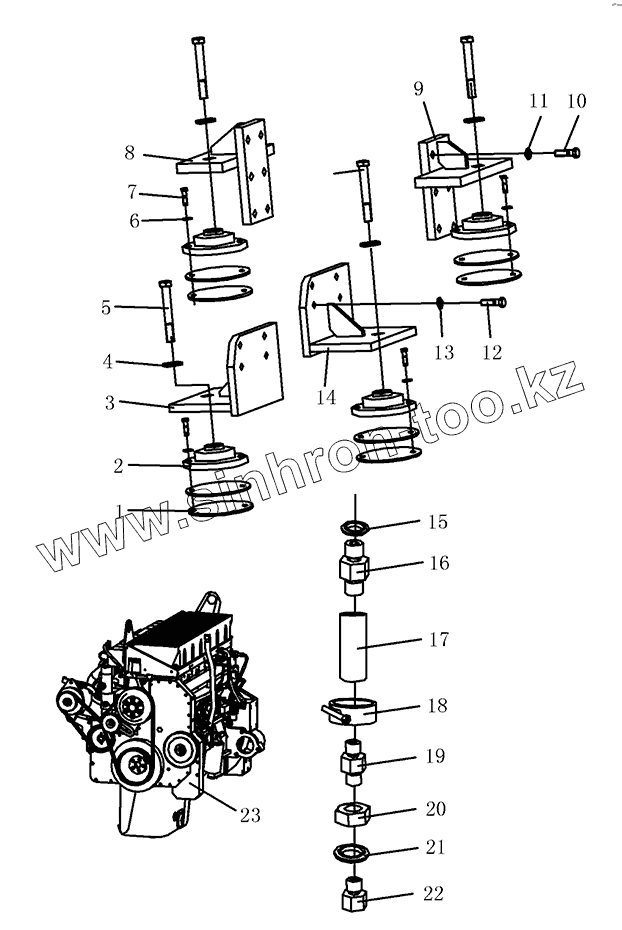 Каталог запасных частей к технике: Shantui Каток SR20M. ENGINE MOUNTING AND ATTACHMENT