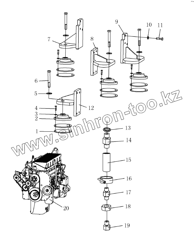Каталог запасных частей к технике: Shantui Каток SR20M. ENGINE MOUNTING AND ATTACHMENT