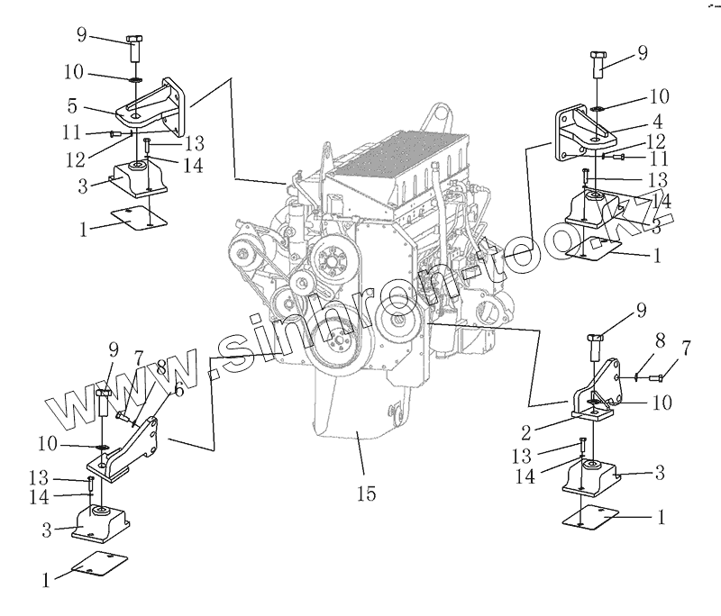 Каталог запасных частей к технике: Shantui Каток SR20M. ENGINE MOUNTING AND ATTACHMENT