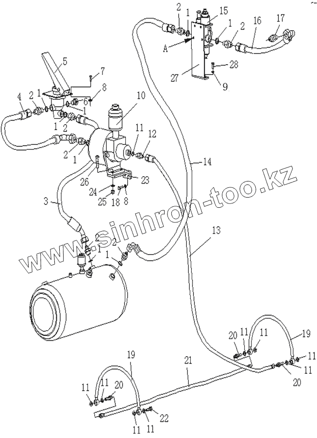 Каталог запасных частей к технике: Shantui Каток SR20M. FOOT BRAKE SYSTEM