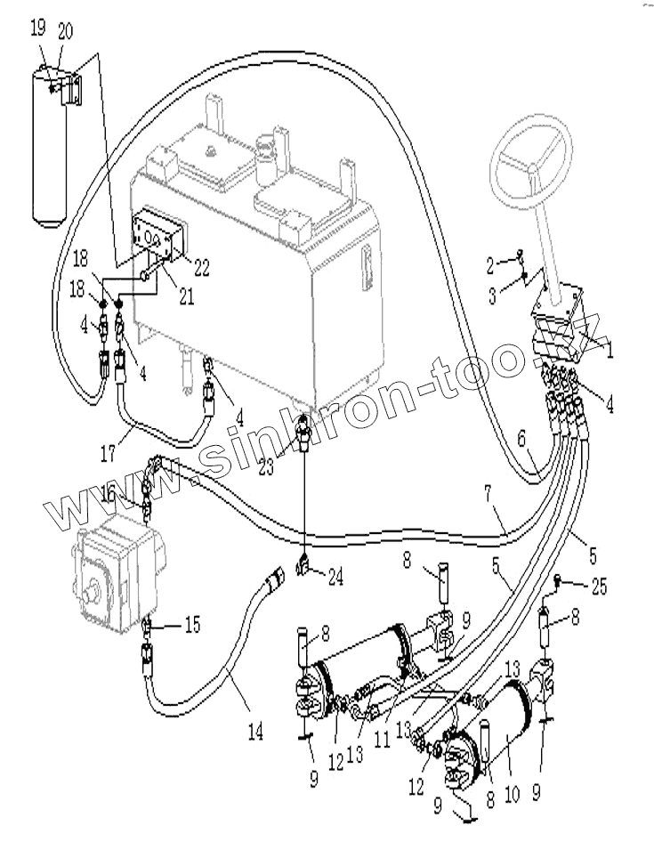 Каталог запасных частей к технике: Shantui Каток SR20M. HYDRAULIC STEERING SYSTEM