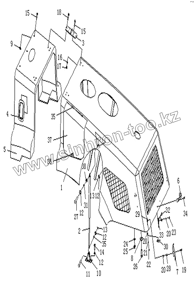 Каталог запасных частей к технике: Shantui Каток SR20M. REAR HOOD ASSEMBLY - Weichai engine