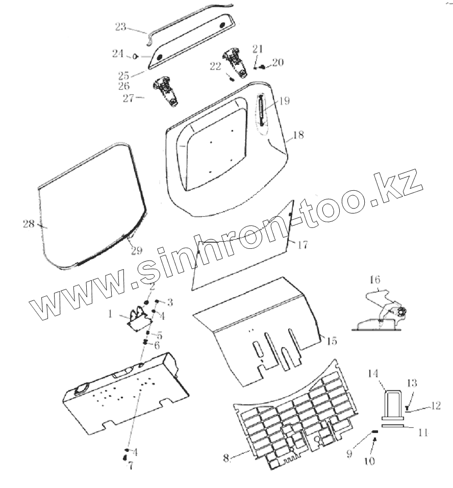 Каталог запасных частей к технике: Shantui Погрузчик SF15, SF18. ENGINE HOOD ASSY