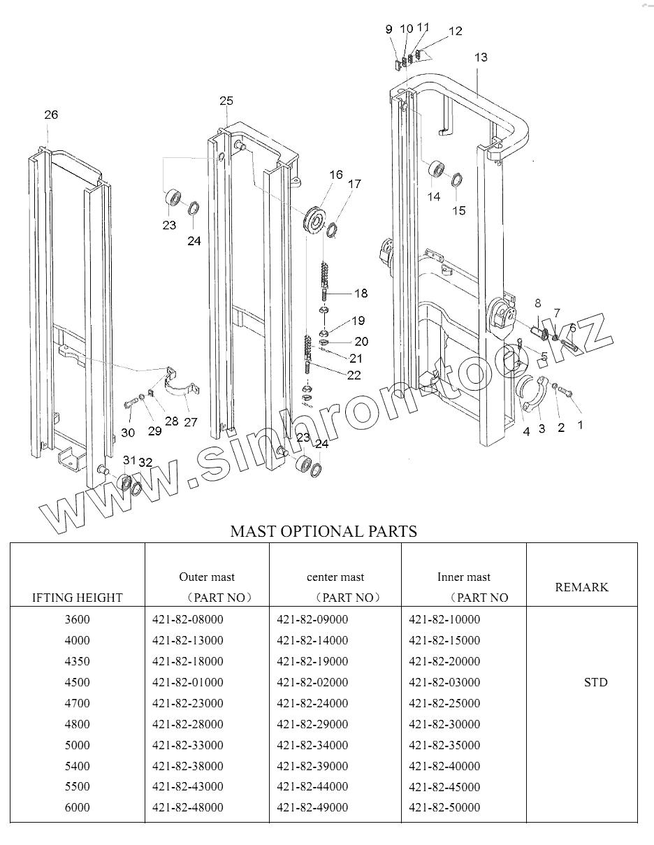 Каталог запасных частей к технике: Shantui Погрузчик SF15, SF18. MAST