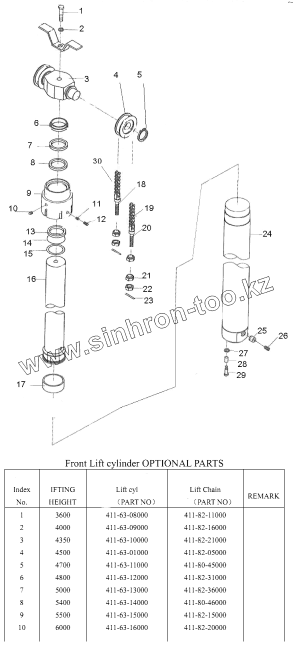 Каталог запасных частей к технике: Shantui Погрузчик SF30. FRONT LIFT CYLINDER