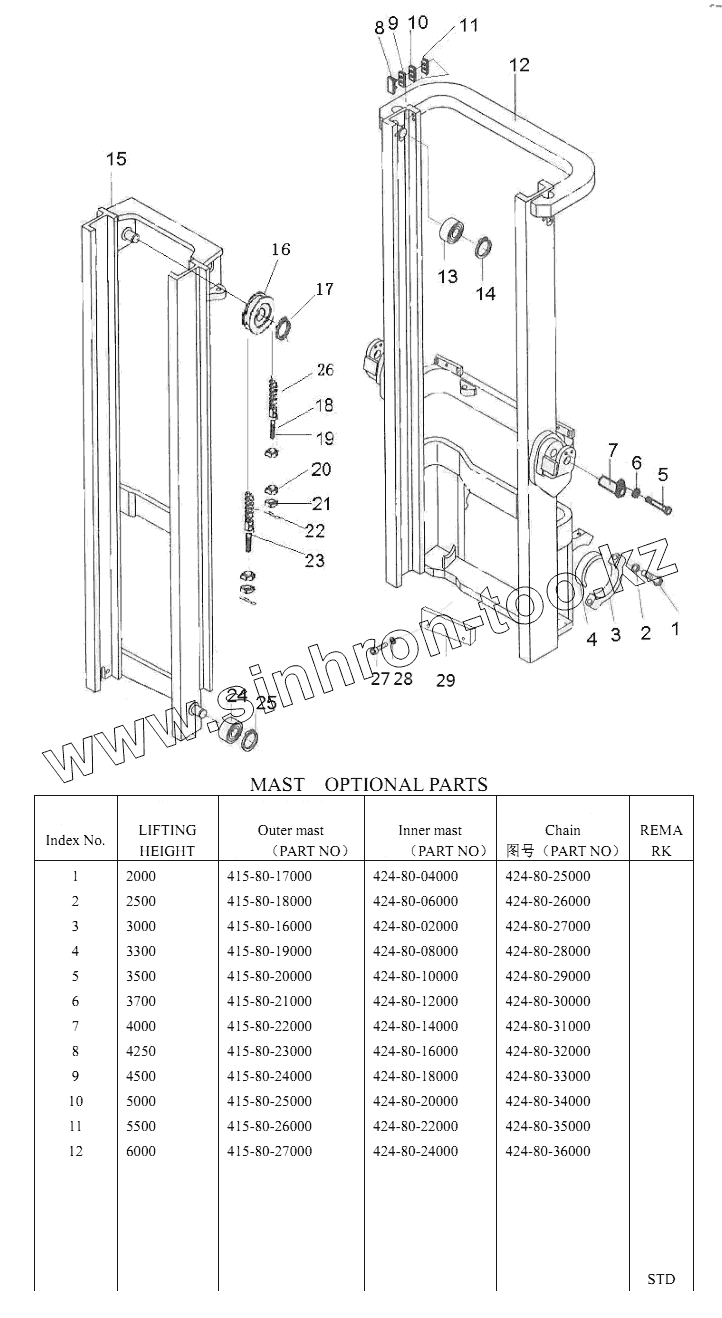 Каталог запасных частей к технике: Shantui Погрузчик SF30. MAST SF35