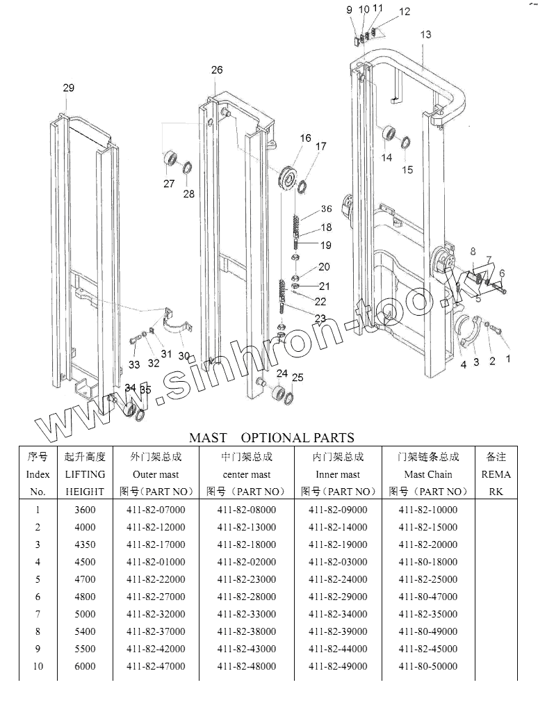 Каталог запасных частей к технике: Shantui Погрузчик SF30. MAST SF35
