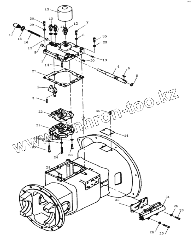 Каталог запасных частей к технике: Shantui Погрузчик SF30. TORQUE CONVERTER TRANSMISSION ASSY (2/9)