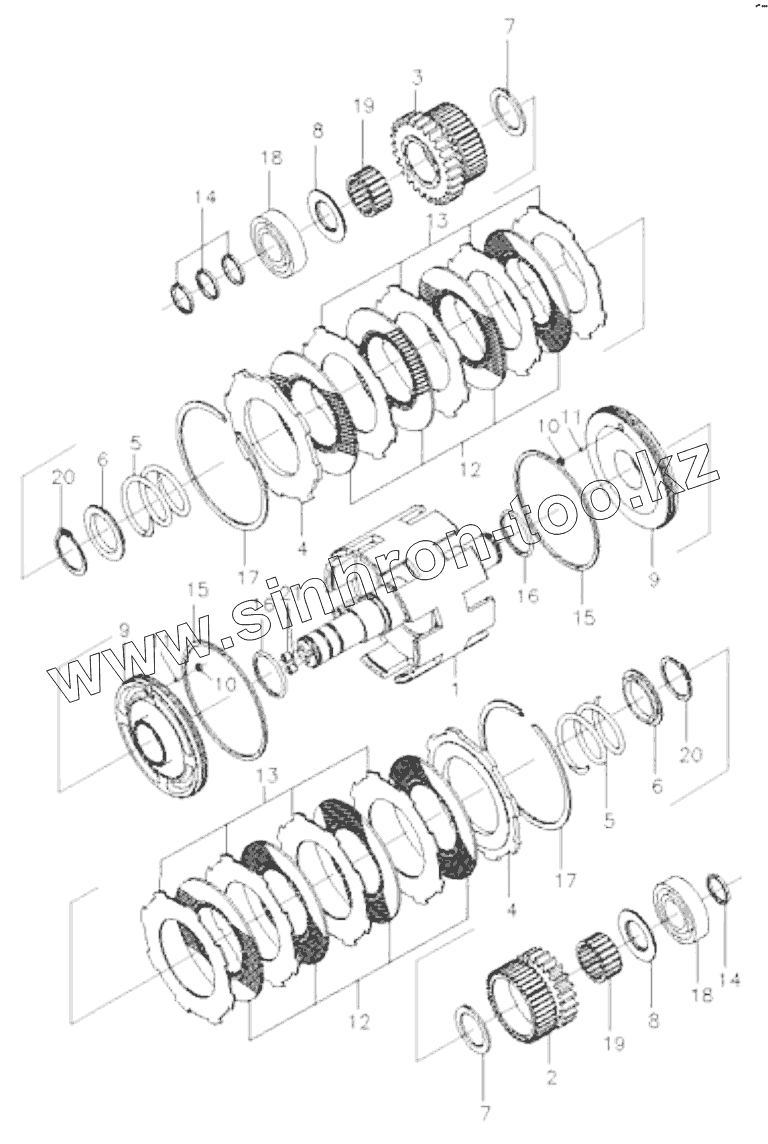 Каталог запасных частей к технике: Shantui Погрузчик SF30. TORQUE CONVERTER TRANSMISSION ASSY (3/8)