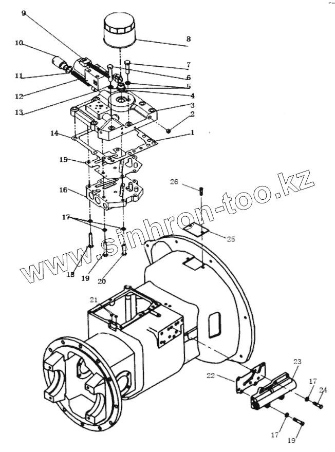 Каталог запасных частей к технике: Shantui Погрузчик SF30. TORQUE CONVERTER TRANSMISSION ASSY (3/9)