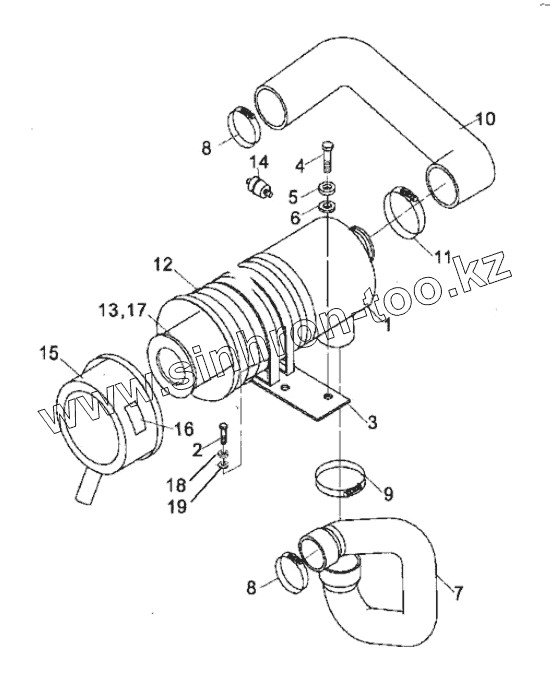 Каталог запасных частей к технике: Shantui Погрузчик SF50/SF60/SF70. AIR CLEANER ASSY (DIESEL)