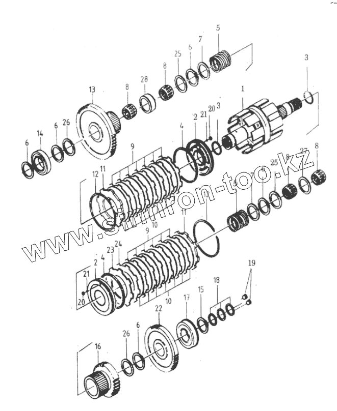 Каталог запасных частей к технике: Shantui Погрузчик SF50/SF60/SF70. CLUTCH (FRONT, BACK)