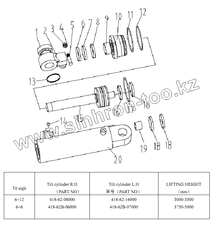 Каталог запасных частей к технике: Shantui Погрузчик SF50/SF60/SF70. TILT CYLINDER