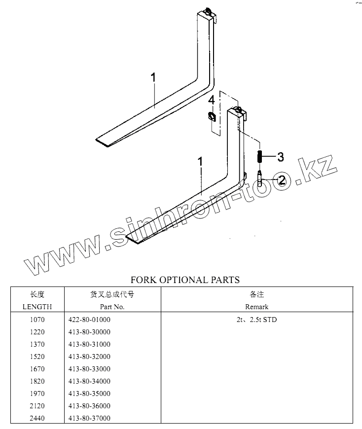 Каталог запасных частей к технике: Shantui Погрузчик вил. 2-2.5t. FORK ASSY