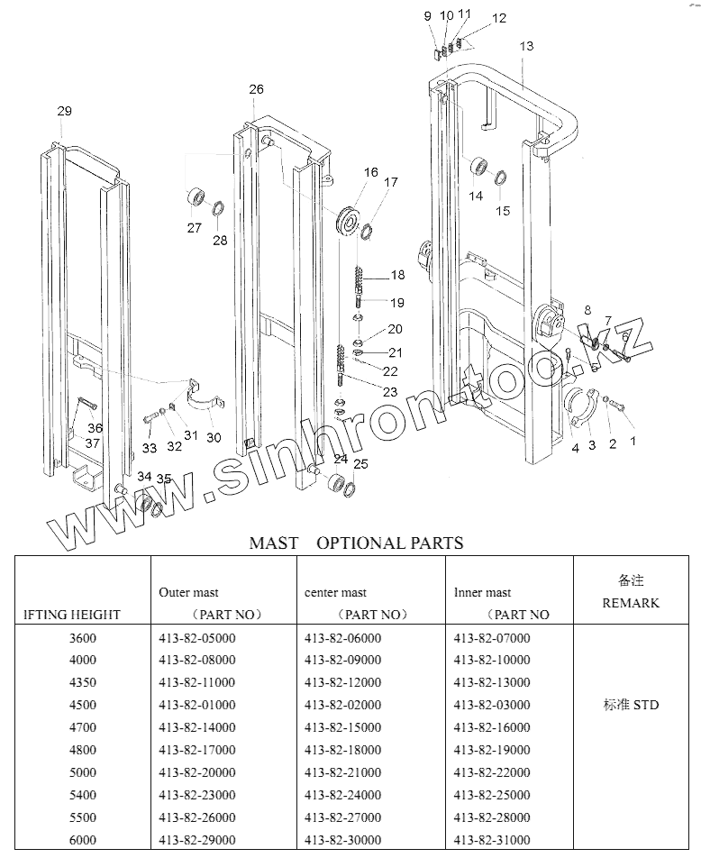 Каталог запасных частей к технике: Shantui Погрузчик вил. 2-2.5t. MAST (3/3)