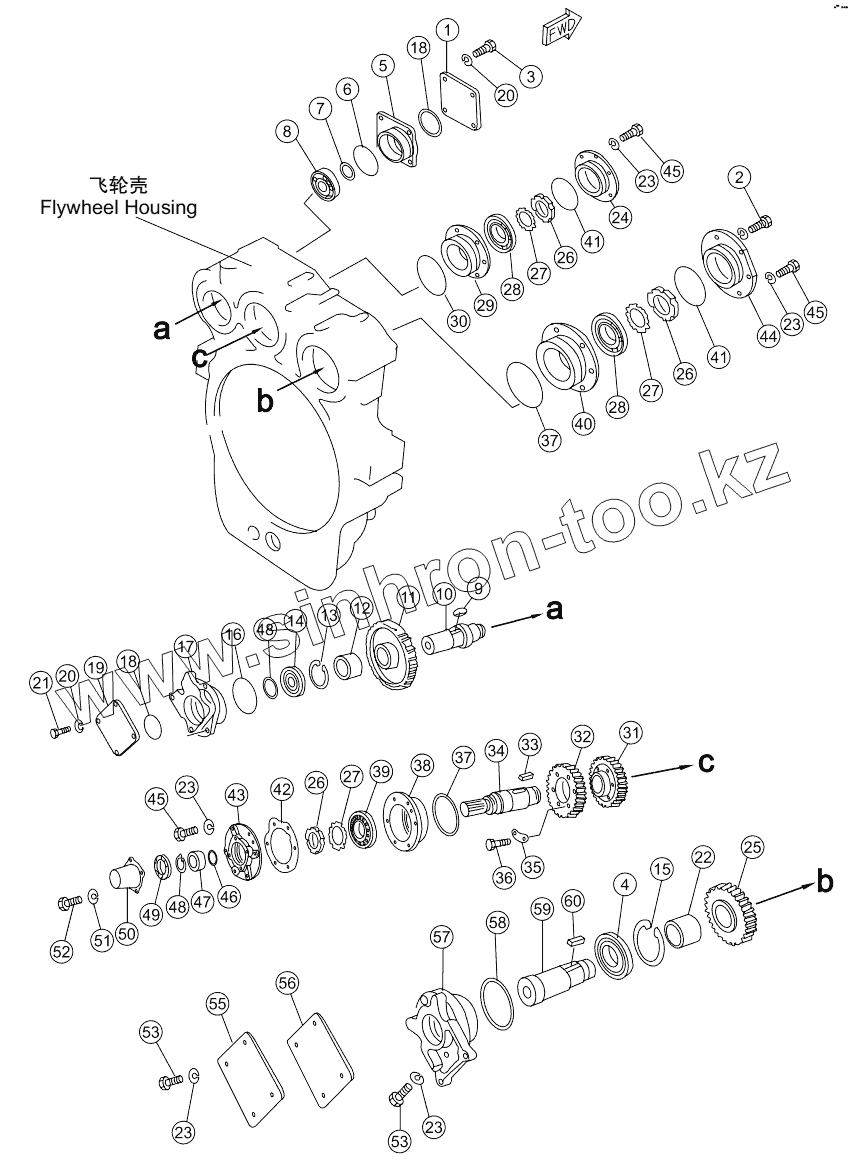 Каталог запасных частей к технике: Shantui SD16. FLYWHEEL HOUSING ASSY