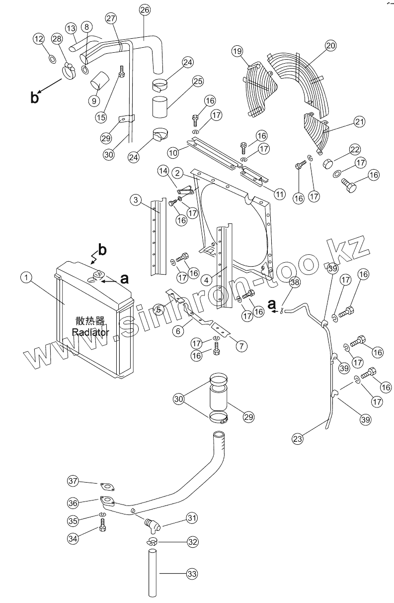 Каталог запасных частей к технике: Shantui SD16. RADIATOR PIPING AND WIND BREAK