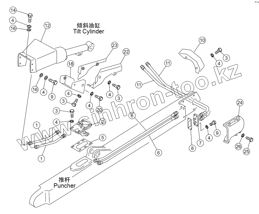 Каталог запасных частей к технике: Shantui SD16. TILT PIPING ASSY SD16
