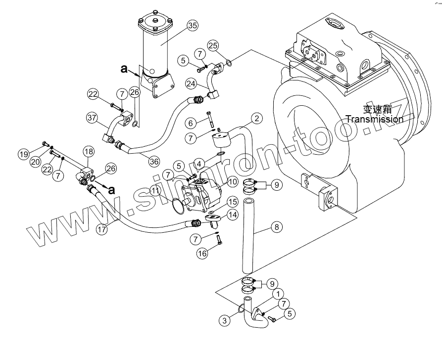 Каталог запасных частей к технике: Shantui SD16. TORQUE CONVERTER PIPING