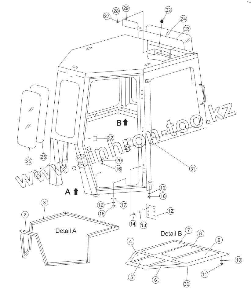 Каталог запасных частей к технике: Shantui SD16 (вариант). CAB MAIN PARTS 16Y-56C-001 V1.0