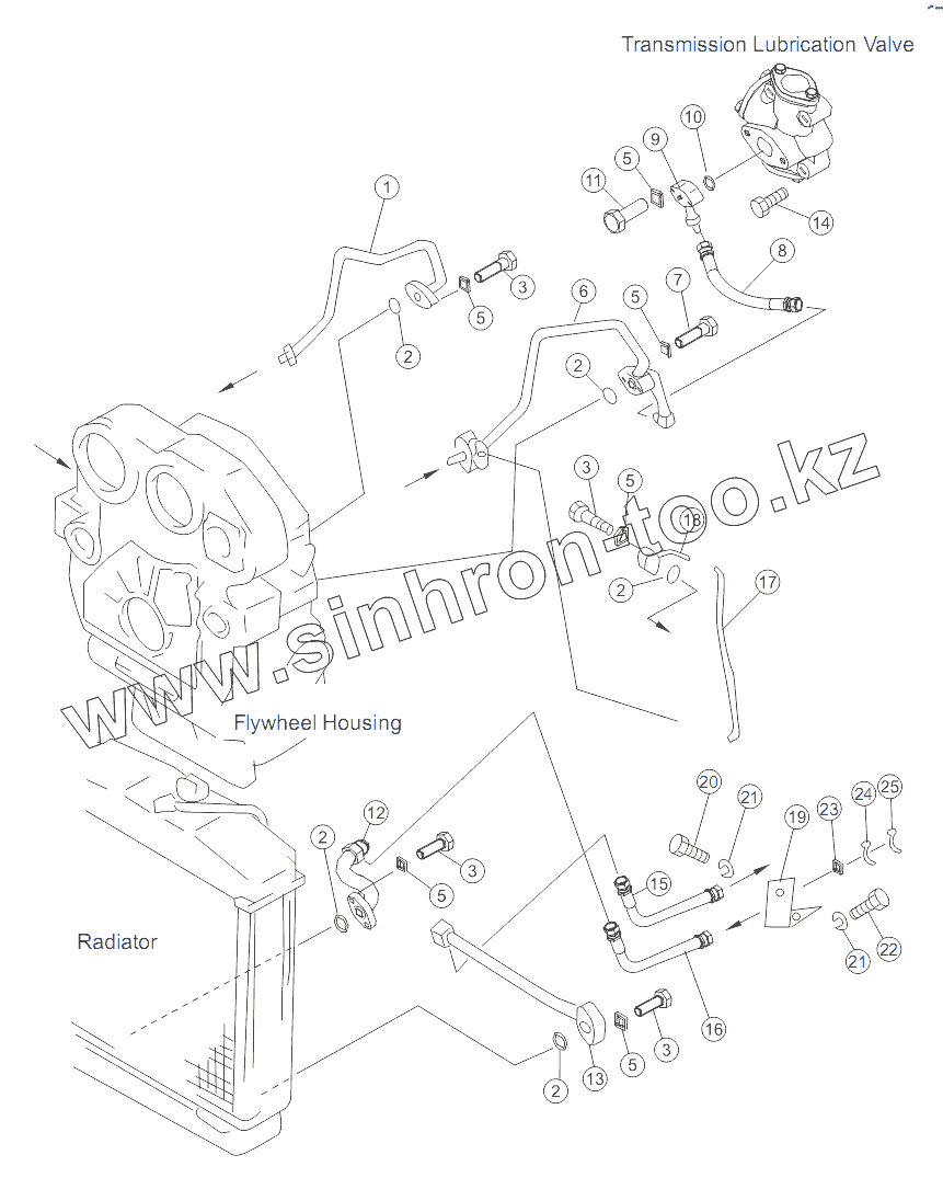 Каталог запасных частей к технике: Shantui SD16 (вариант). OIL COOLER PIPING 16Y-75-003 V1.0