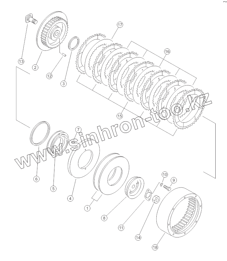 Каталог запасных частей к технике: Shantui SD16 (вариант). STEERING CLUTCH 16Y-16-002 V1.0