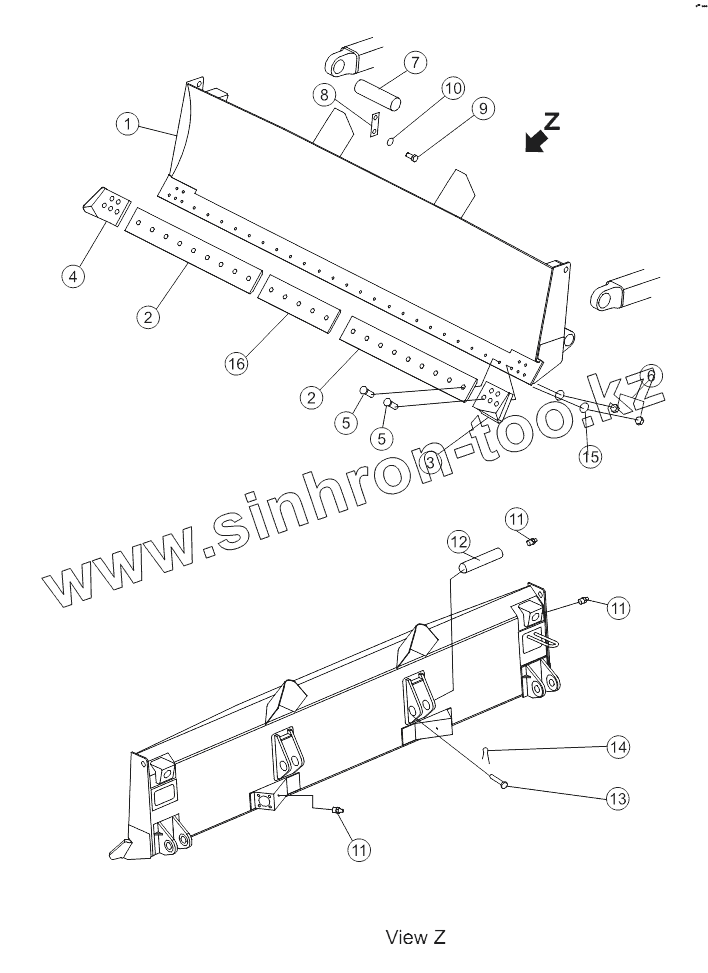 Каталог запасных частей к технике: Shantui SD16 (вариант). STRAIGHT TILT BLADE 16L-80-001 V1.0