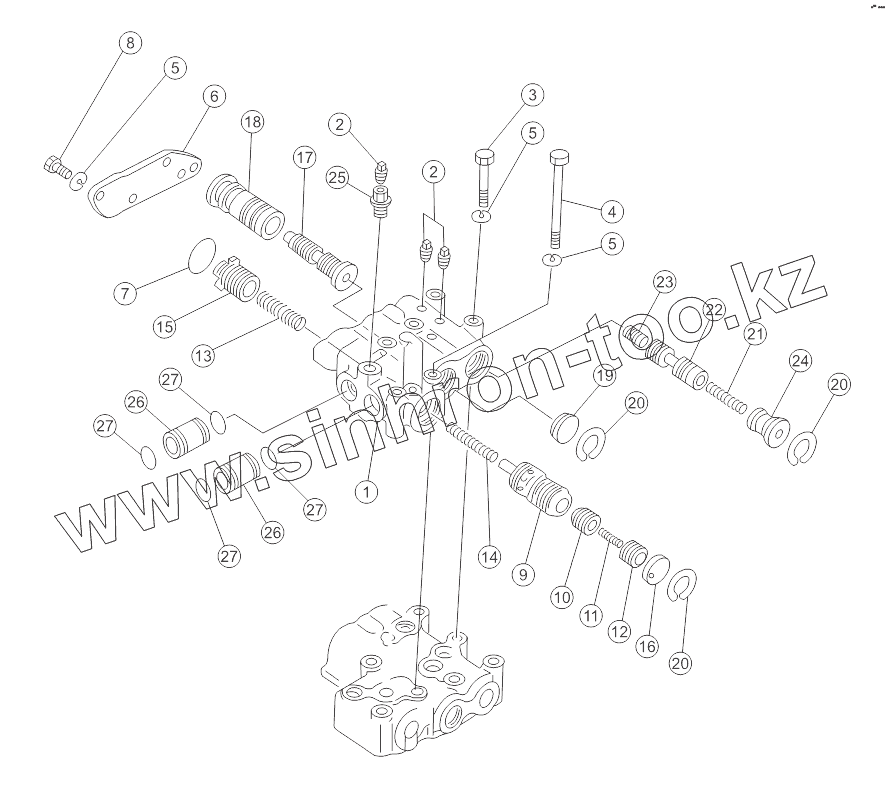 Каталог запасных частей к технике: Shantui SD16 (вариант). TRANSMISSION CONTROL VALVE 16Y-75-102 V1.0