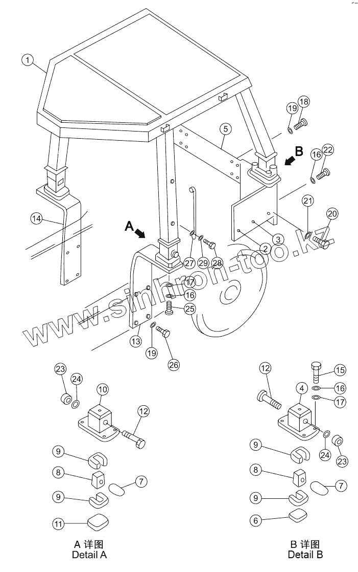 Каталог запасных частей к технике: Shantui SD16E. FRAME, ROPS AND MOUNTING