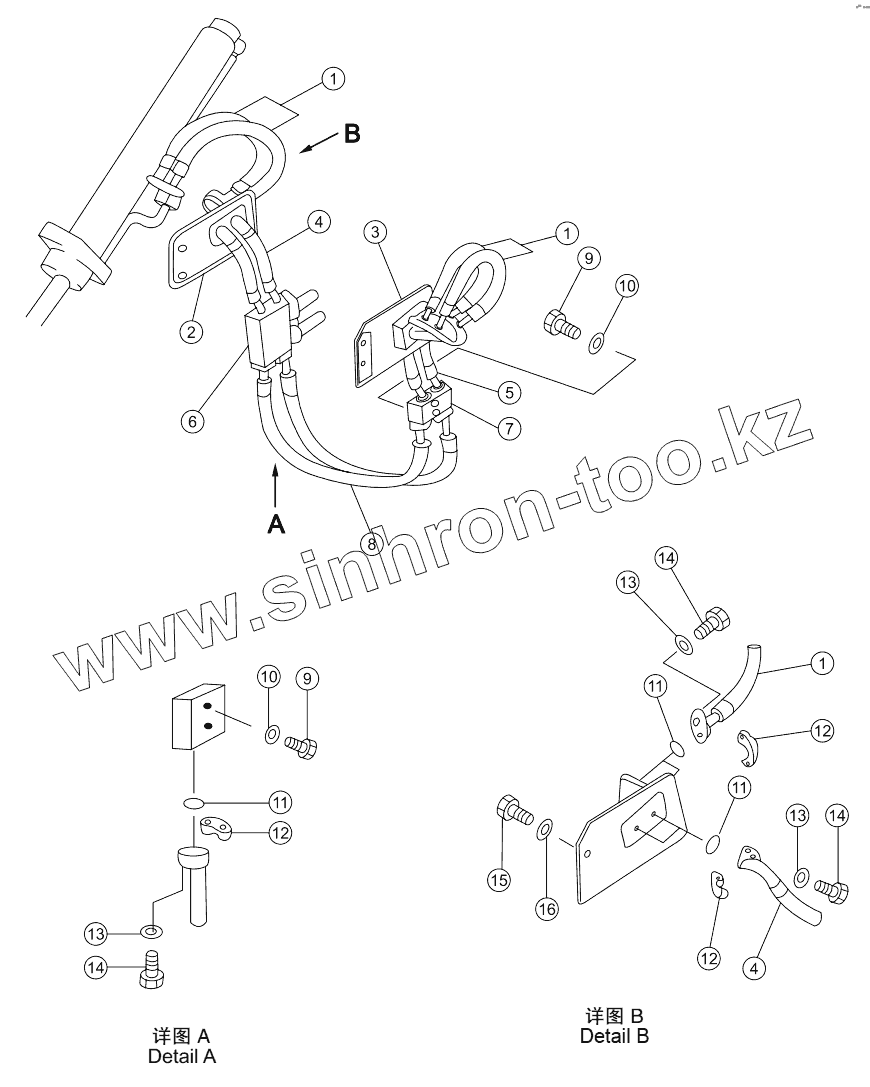 Каталог запасных частей к технике: Shantui SD16L. BLADE LIFT PIPING SD16, SD16E