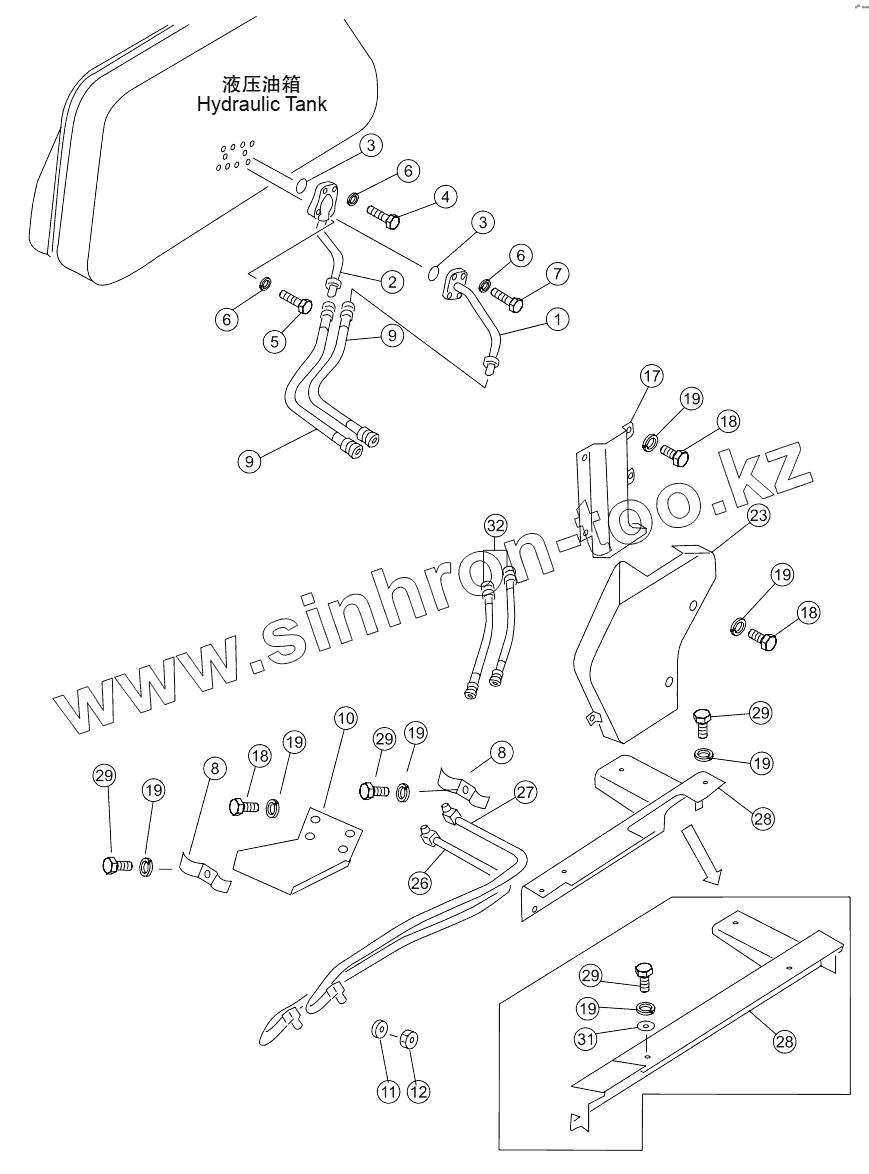 Каталог запасных частей к технике: Shantui SD16L. TILT PIPING ASSY SD16E
