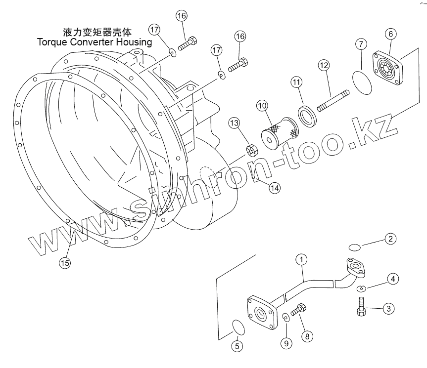 Каталог запасных частей к технике: Shantui SD16L. TORQUE CONVERTER SUCTION PIPE