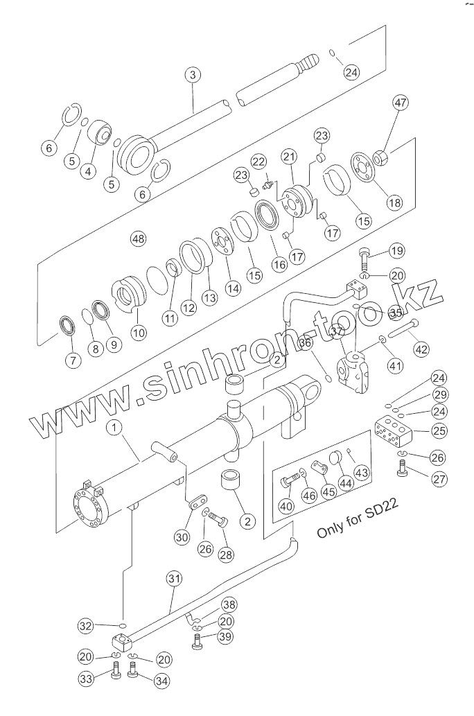Каталог запасных частей к технике: Shantui SD22 (вариант). BLADE LIFT CYLINDER (1/2)