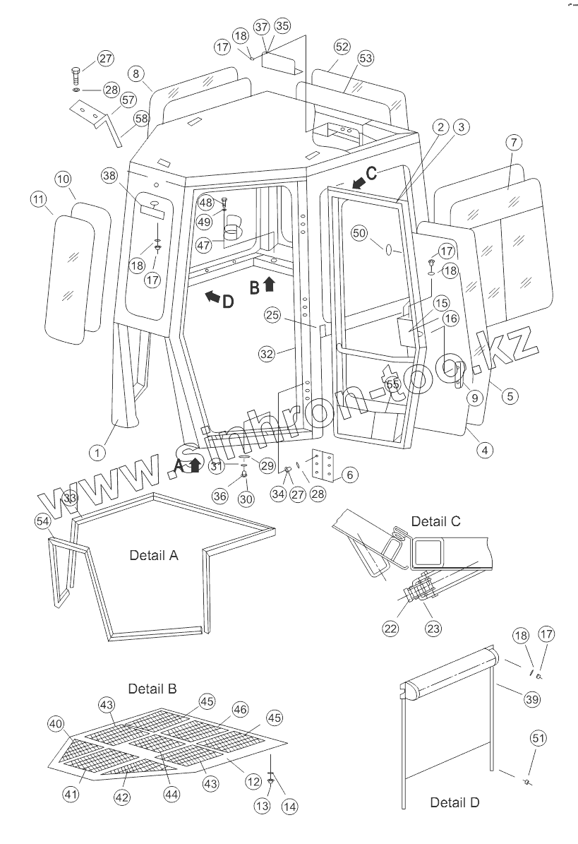 Каталог запасных частей к технике: Shantui SD22 (вариант). CAB (FOR ROPS)