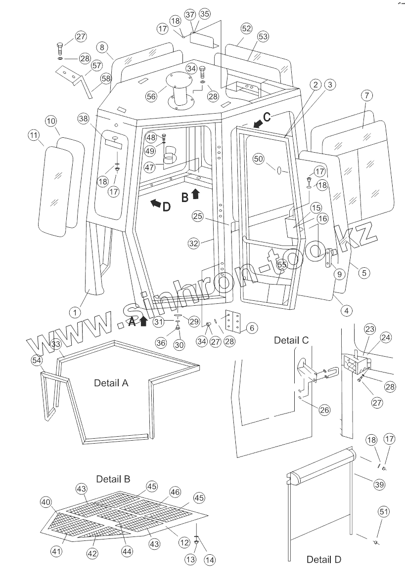 Каталог запасных частей к технике: Shantui SD22 (вариант). CAB ASSEMBLY