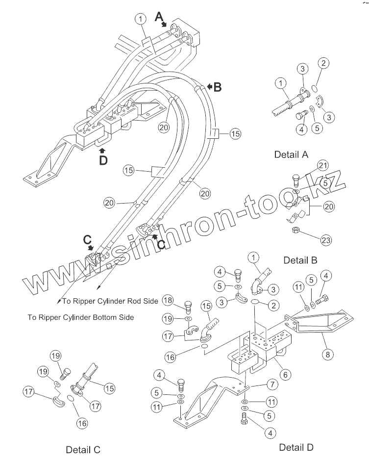 Каталог запасных частей к технике: Shantui SD22 (вариант). RIPPER PIPING