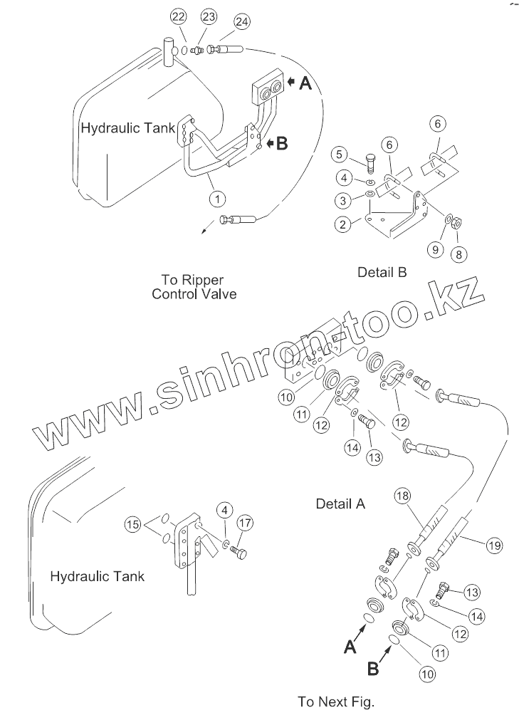 Каталог запасных частей к технике: Shantui SD22 (вариант). SINGLE GROUSER HYDRAULIC PIPING (3/5)