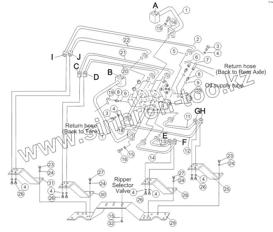 Каталог запасных частей к технике: Shantui SD22 (вариант). SINGLE GROUSER HYDRAULIC PIPING (4/5)