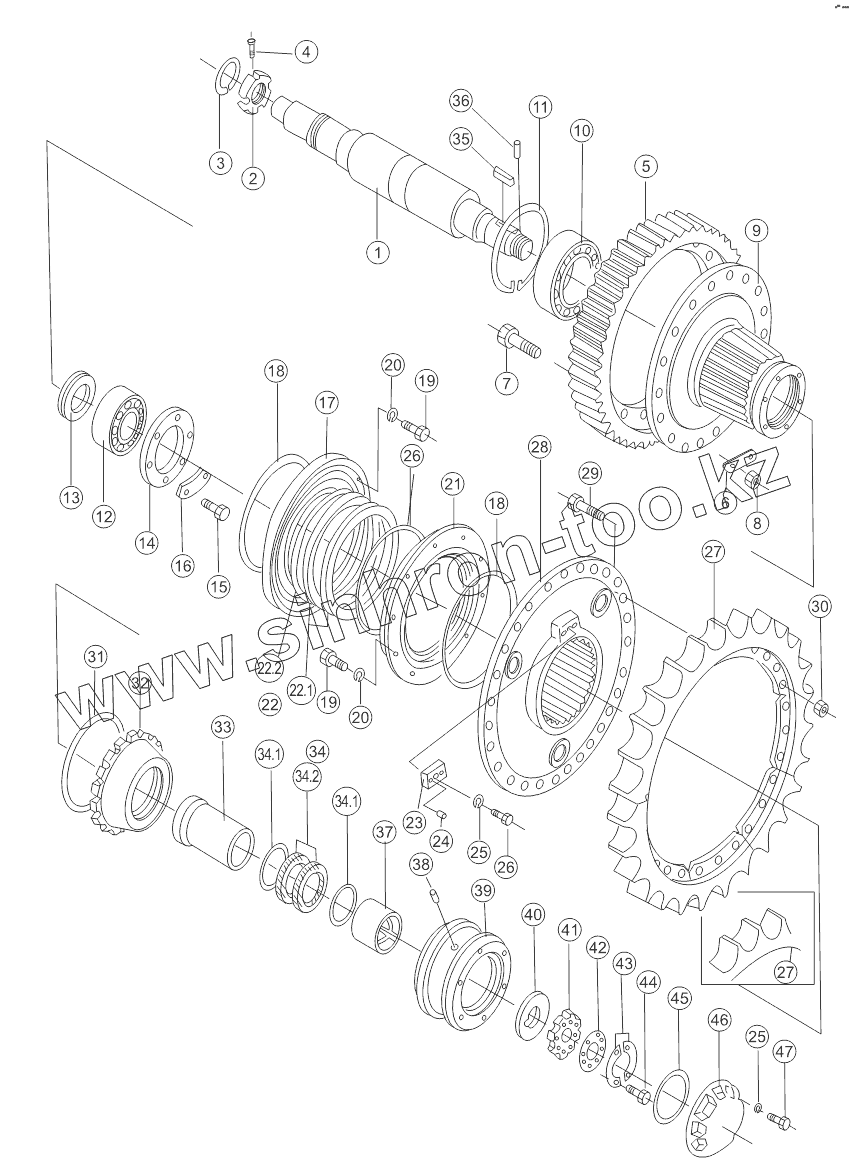 Каталог запасных частей к технике: Shantui SD32 (вариант). FINAL DRIVE GEAR SHAFT AND SPROCKET