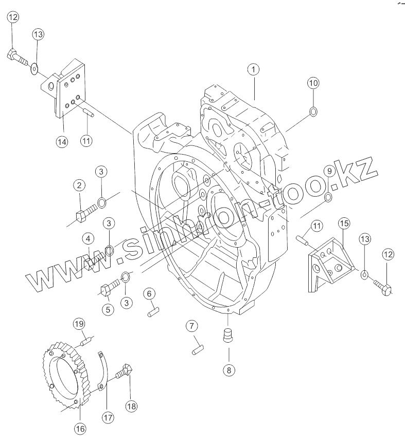 Каталог запасных частей к технике: Shantui SD32 (вариант). FLYWHEEL HOUSING ASSY