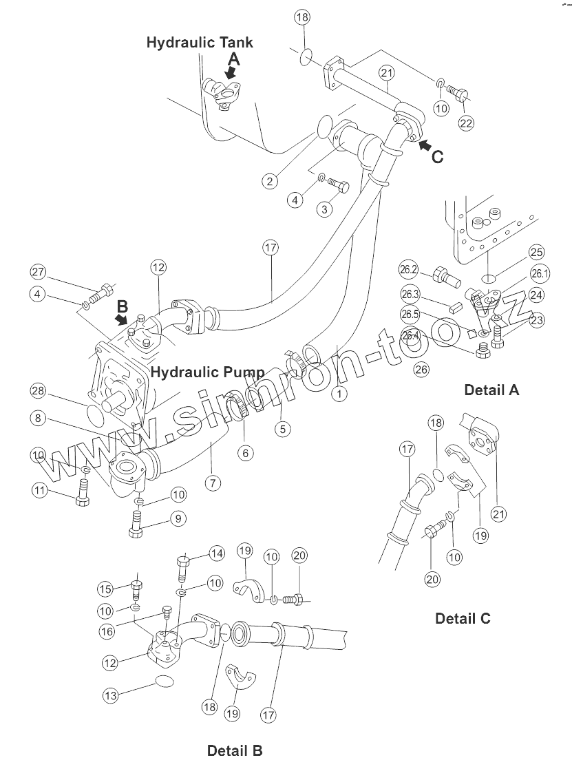 Каталог запасных частей к технике: Shantui SD32 (вариант). HYDRAULIC PIPING ASSY