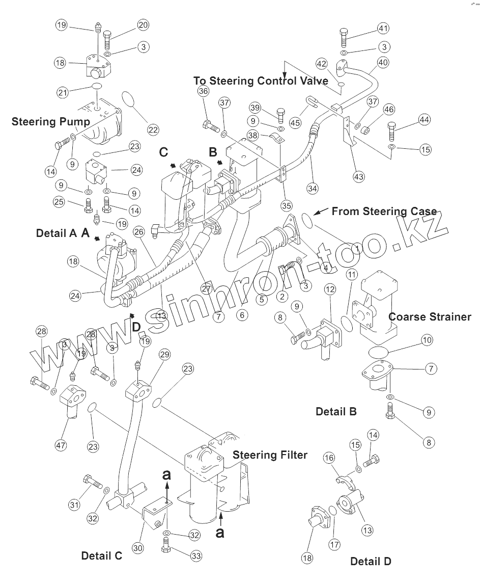 Каталог запасных частей к технике: Shantui SD32 (вариант). STEERING PIPING SYSTEM (1/2)