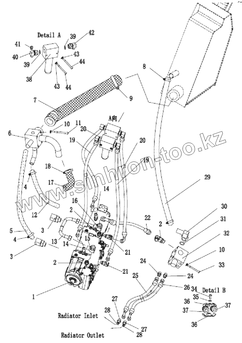 Каталог запасных частей к технике: Shantui SD10YE. TRAVELING HYDRAULIC PIPING ASSY
