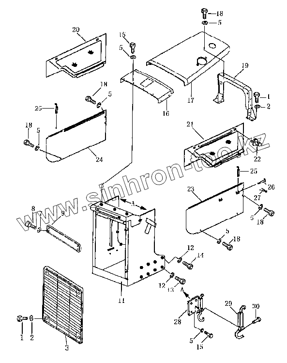 Каталог запасных частей к технике: Shantui SD16. Капот двигателя в сборе (SD16, SD16E)