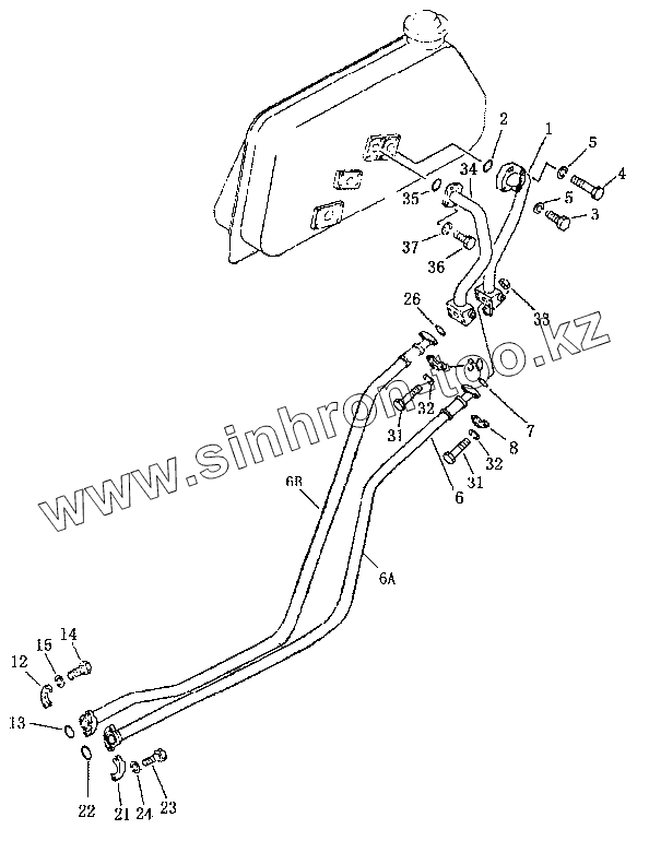Каталог запасных частей к технике: Shantui SD16. Трубопровод гидравлический (от бака к гидроцилиндру подъема)