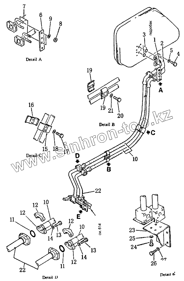 Каталог запасных частей к технике: Shantui SD22. Гидравлические трубопроводы (от бака к подъемному цилиндру)