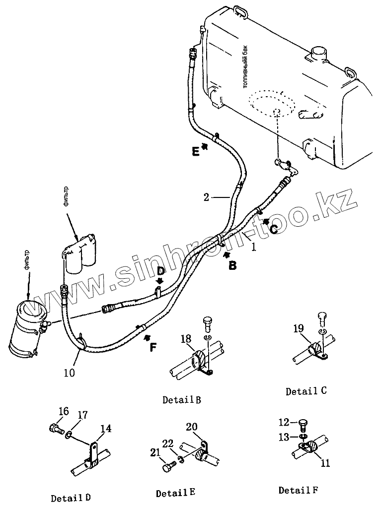 Каталог запасных частей к технике: Shantui SD22. Топливные трубопроводы