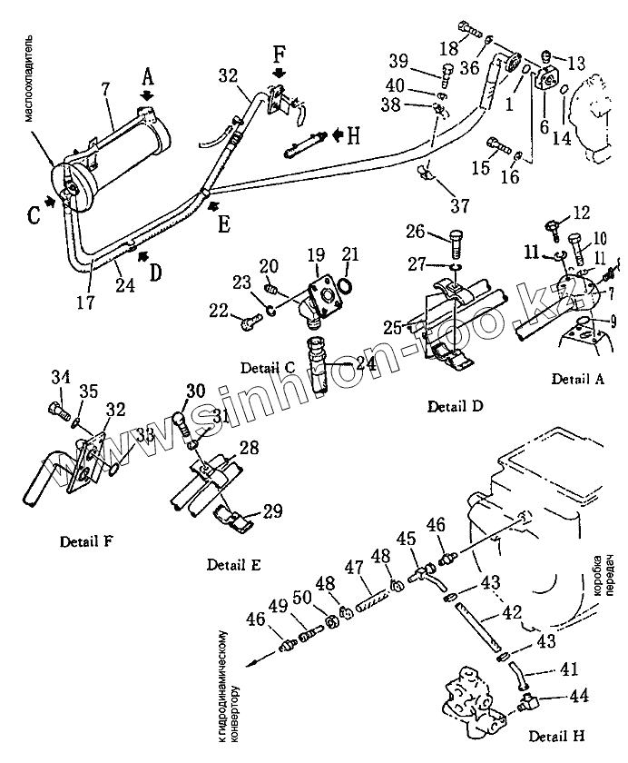Каталог запасных частей к технике: Shantui SD22. Трубопроводы гидротрансформатора (1/2)