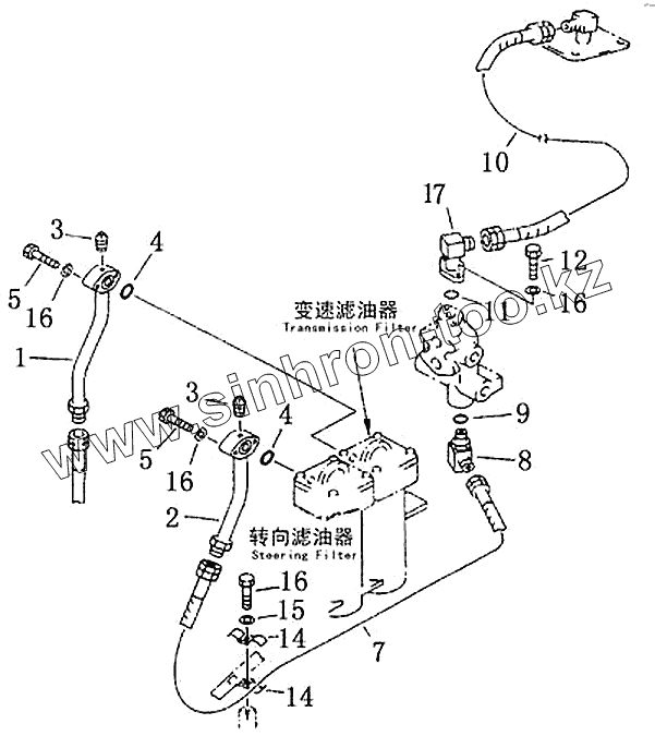 Каталог запасных частей к технике: Shantui SD22. Трубопроводы рулевого управления (2/3)